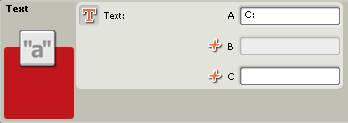 But have we obtained the desired result yet? If we analyze in some detail the result we want to obtain in the text file, we will see that we not only need to record the rotation degrees, but we also need to record which motor has turned these degrees. Otherwise, we will obtain a bunch of numbers and we will not know which motor they refer to. For this, we need to add the letter of the motor “B” or “C” to the rotation degrees in each case. Thus, we need to add a new block to concatenate these text strings. This block is called “Text” and allows concatenating up to 3 text strings.