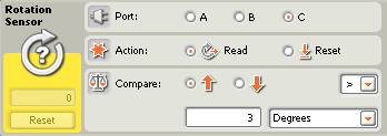 As we have seen, observe that the rotation sensor needs to be reset after reading the supervised wheel rotations, for each line following cycle. To count the rotations, the rotation sensor needs to be placed just after stopping the supervised motor and before starting the opposite motor rotations.