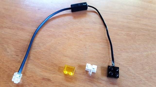 Lamp or legacy light, NXT/RCX converter cable and transparent 2x1 yellow brick